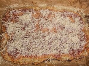 • When crust is done to your liking, top with marinara and parmesan cheese.
