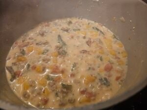 - Cook until kale is soft. Add cream cheese.
