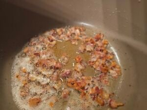 Cook the bacon in the pot you’ll use for the soup. Once crispy, remove and set aside.