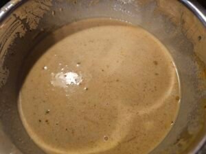 Mix the Sauce: In a bowl, whisk together coconut milk, broth, Bragg’s, garlic, peanut butter, ginger, tomato paste, curry powder, turmeric, salt, and pepper until smooth.
