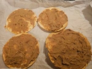 - Spread a thin layer of refried beans (optional).