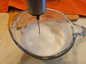 - Stop here if desired. If not, let's make a pumpkin spice foam. In a small glass add 1 tablespoon of heavy cream, 1 tablespoon of milk, and 1 tablespoon of the pumpkin spice syrup. I warmed the mixture up. Froth. The froth is nice, but the foam from just the milk and syrup was great.