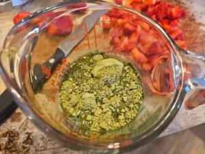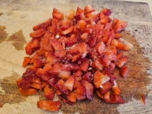 - Dice your strawberries. If needed, add 1-2 tablespoons of sweetener of choice. My strawberries weren't very sweet.