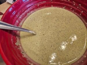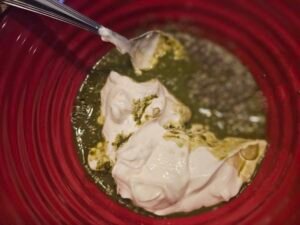 - Carefully mix yogurt with the matcha. Slowly add milk of choice. If I add it all at once, it is harder for me to mix.