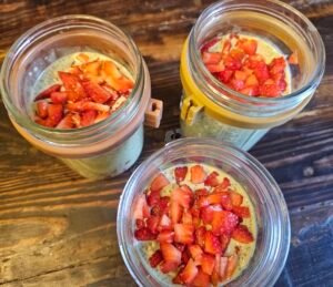 High Protein Strawberry Matcha Chia Pudding