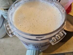 - Mix everything together. I have used a frother and a blender. The blender caused too much air into the creami base.
