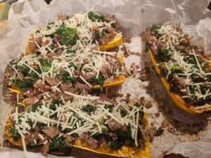 🧡 Sausage and Kale Stuffed Delicata Squash (Trim Healthy Mama Friendly!)