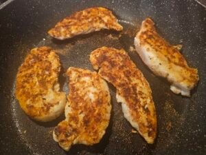 Note: If your chicken is thick, pound until thinner, or cut into thinner pieces.