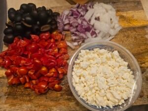 • 1-2 cups black olives (Kalamata would be more authentic, but use what you have!)